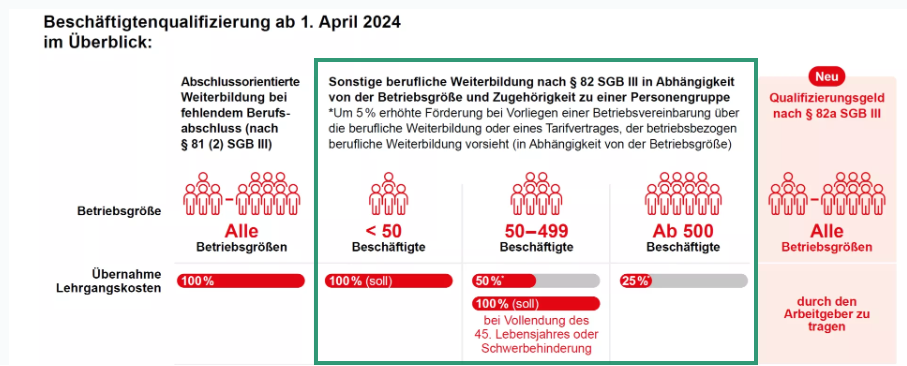 Die Agentur für Arbeit übernimmt einen Teil der Lohnkosten – aber nur für die tatsächliche Lernzeit während der regulären Arbeitszeit. Maximal werden 225 Zeitstunden angerechnet.